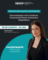 Não perca a oportunidade de participar da nossa próxima Palestra de Educação Continuada! Dia 26 de Agosto, teremos a honra de receber Dra. Elen Tolentino, abordando o tema “Estomatologia e Dor Orofacial: Conectando Sinais, Sintomas e Diagnóstico”.