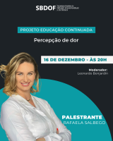 Não perca a oportunidade de participar da nossa próxima Palestra de Educação Continuada! Dia 16 de Dezembro, teremos a honra de receber Rafaela Salbego, abordando o tema “Percepção de dor”.